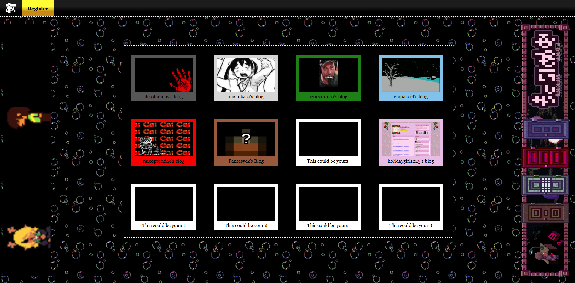 I highly recommend right clicking on the art you take interest in and opening it in a new tab (or zooming in on mobile), as most of the images have been distorted to fit the grid.